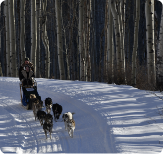 Join us for an exhilarating sled dog adventure on Dunckley Pass, just south of Steamboat Springs. We offer two types of experiences: Learn-to-mush (drive your own sled after an orientation and have a guide along on the trip as a coach) OR Fully-Guided (the guide drives either part or all of the excursion for the guests and stays on the sled with the guests).